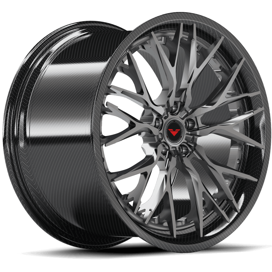 Vorsteiner Wheels produces each and every bespoke forged wheels at our in-house California facility to ensure the quality standards and delivery times meet our clients expectations. All of our multi-piece forged wheels utilize California sourced T6-6061 aerospace & medical grade aluminum that is TUV rated for safety. We engineer lab test and FEA all of our wheels to maximize performance while minimizing weight specific to target vehicle application without using a universal load rating. Each VMP wheel comes with a standard solid finish. You can also add brushed or polished textures with various finishes and sheens. The VMP 200 Series comes with a DYMAG carbon fiber barrel and customizable face.What are the advantages of a Dymag Carbon Fiber Barrel? Ultra low moment of inertia 40% lighter than cast aluminum Latest low-density composite and metallic materials