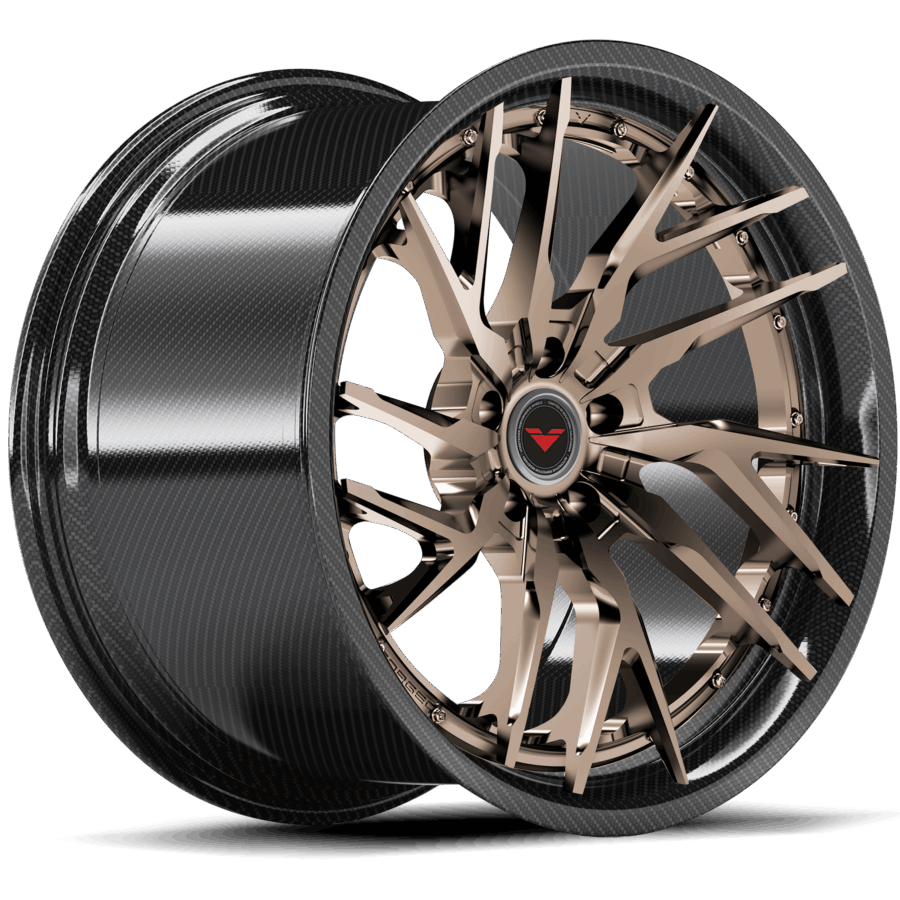 Vorsteiner Wheels produces each and every bespoke forged wheels at our in-house California facility to ensure the quality standards and delivery times meet our clients expectations. All of our multi-piece forged wheels utilize California sourced T6-6061 aerospace & medical grade aluminum that is TUV rated for safety. We engineer lab test and FEA all of our wheels to maximize performance while minimizing weight specific to target vehicle application without using a universal load rating. Each VMP wheel comes with a standard solid finish. You can also add brushed or polished textures with various finishes and sheens. The VMP 200 Series comes with a DYMAG carbon fiber barrel and customizable face.What are the advantages of a Dymag Carbon Fiber Barrel? Ultra low moment of inertia 40% lighter than cast aluminum Latest low-density composite and metallic materials