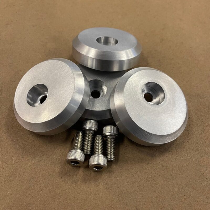 The original bolt-on lift points made in the USA for the Aston Martin 2007-2016 Vantage. Machined from American billet aluminum and designed to be left on the car. The stealth design also incorporates weight savings and a custom design to catch the attention of the mechanic or shop preparing to lift your vehicle.