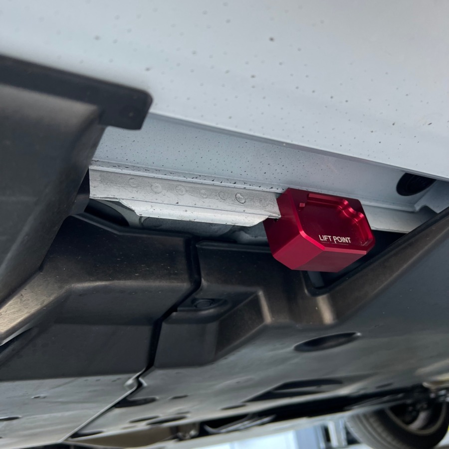 The original bolt-on lift points made in the USA for the 2022-2024 Corolla GR. Machined from American billet aluminum and designed to be left on the car. The stealth design also incorporates weight savings and a custom design to catch the attention of the mechanic or shop preparing to lift your vehicle. These are angled as to not bend the pinch weld as the car is lifted by a floor jack or lift.