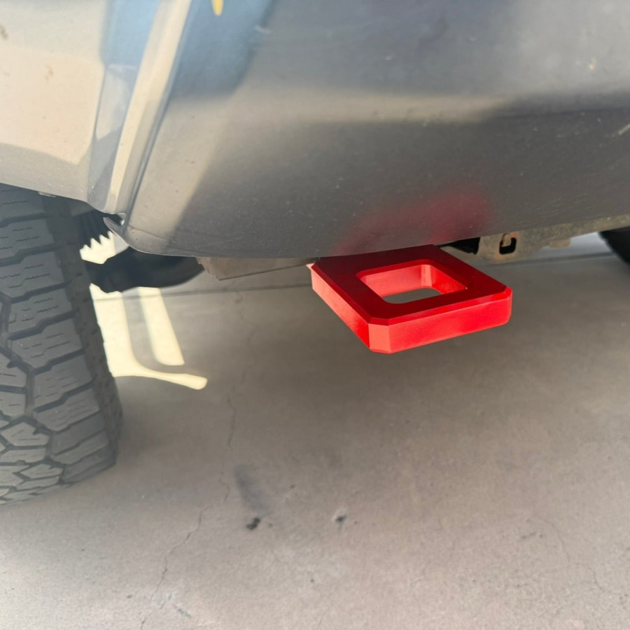 This product threads into the front factory receiver already built into the car. Images show a modified tow hook door trimmed to fit our tow hook shaft.