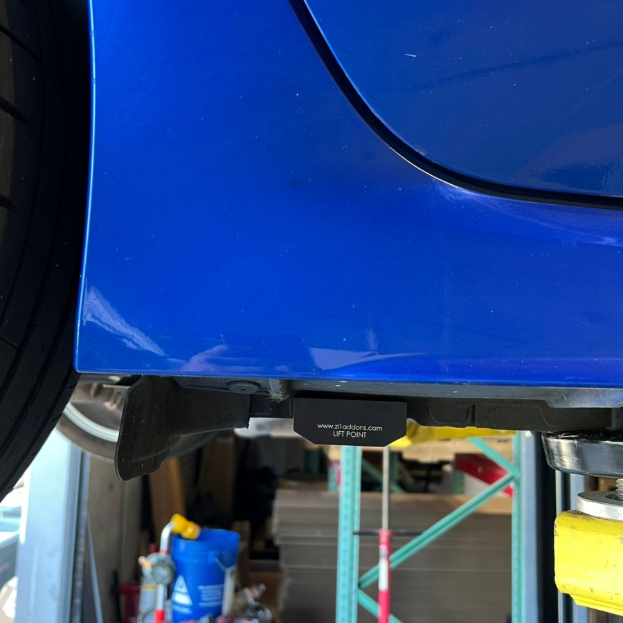 The original bolt-on lift points made in the USA for the Subaru 15-21 WRX. Machined from American billet aluminum and designed to be left on the car. The stealth design also incorporates weight savings and a custom design to catch the attention of the mechanic or shop preparing to lift your vehicle. These are angled as to not bend the pinch weld as the car is lifted by a floor jack or lift.